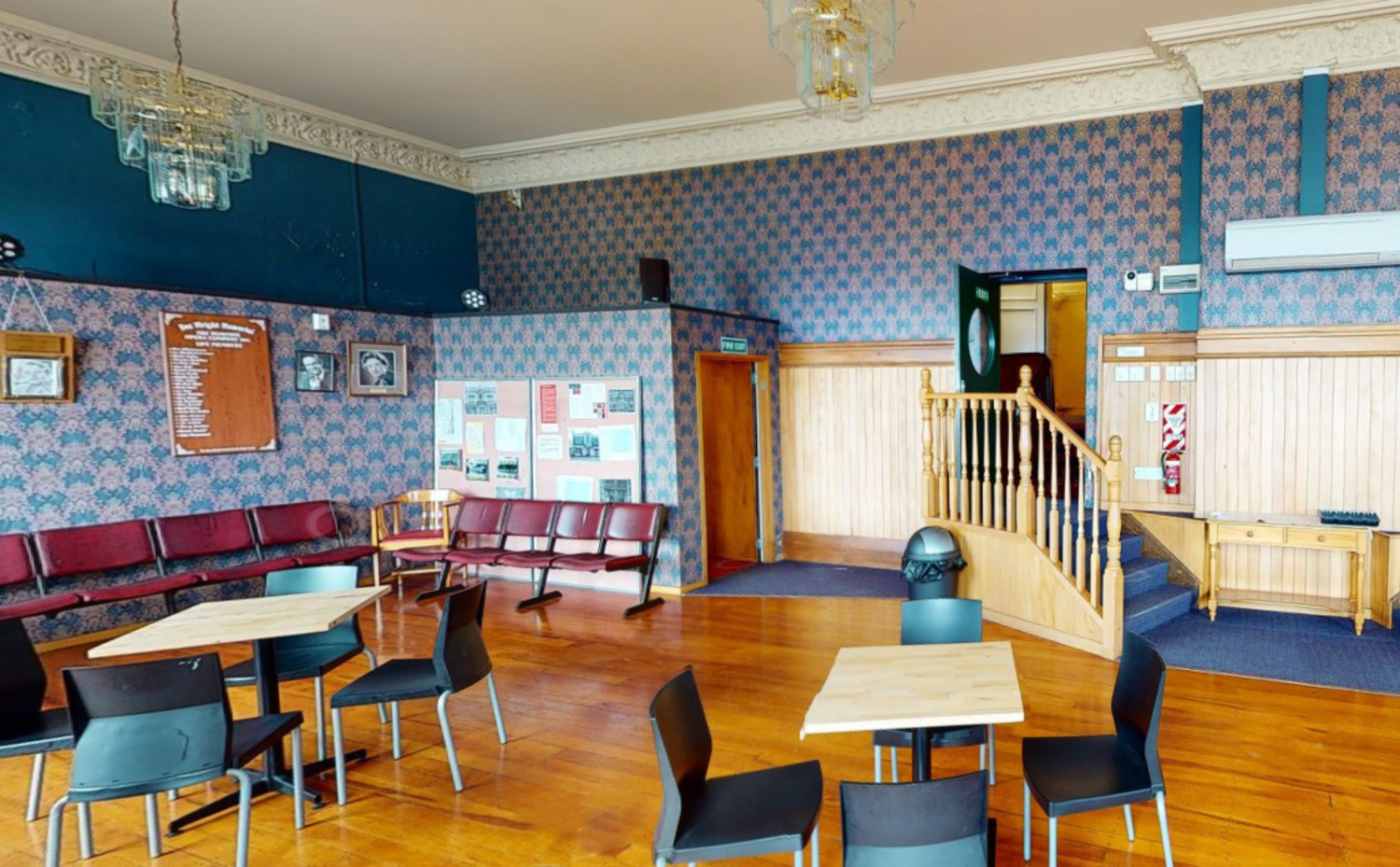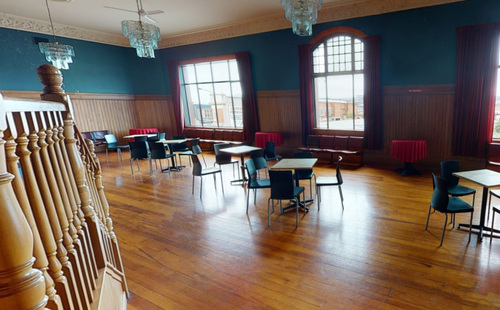 Access to the function room is via the stairs in the main foyer, or by a private staircase.